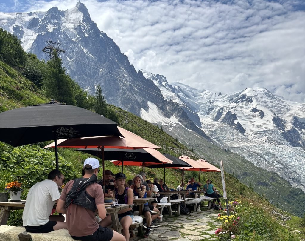 “It’s located in a stunning valley,” Kathleen said. “Our warm up hike was up the side of the valley facing Mont Blanc. It was a short, hot, hard hike, but we were rewarded with jaw-dropping views of Mont Blanc with each step and we were aghast in the knowledge that in just a couple days we’d be at the peak of Mont Blanc (15,774 feet). We stayed at the glorious Grand Hotel des Alps in Chamonix at the foot of Mont Blanc.”
