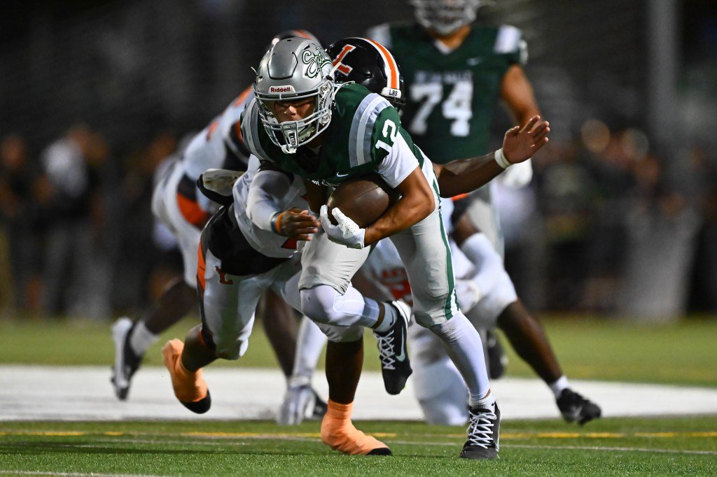 No. 1 De La Salle (1-0) at No. 5 Serra (0-1), 2 p.m.: Both teams are coming off challenging openers: De La Salle beat Lakeland (Fla.) 10-6, and Serra couldn’t quite keep up with Folsom, losing 56-42 to five-star QB Ryder Lyons. Deuce Jones-Drew had the go-ahead TD for DLS and played every snap in the Spartans’ victory, compiling 99 total yards. Serra is breaking in new starting QB Caleb Bandel, who had a mixed debut. Bandel went 14 for 26 with 235 yards and two touchdowns but also threw a crucial pick-six that allowed Folsom to ice the win. Yet the Padres showcased an explosive overall attack, with contributions from running backs Iziah Singleton and Jeovanni Henley (167 combined yards) and receiver Charles Walsh, coach Patrick Walsh’s son who had 100 yards and an 80-yard TD. HSRatings.com projects a 35-3 De La Salle victory. — Christian Babcock