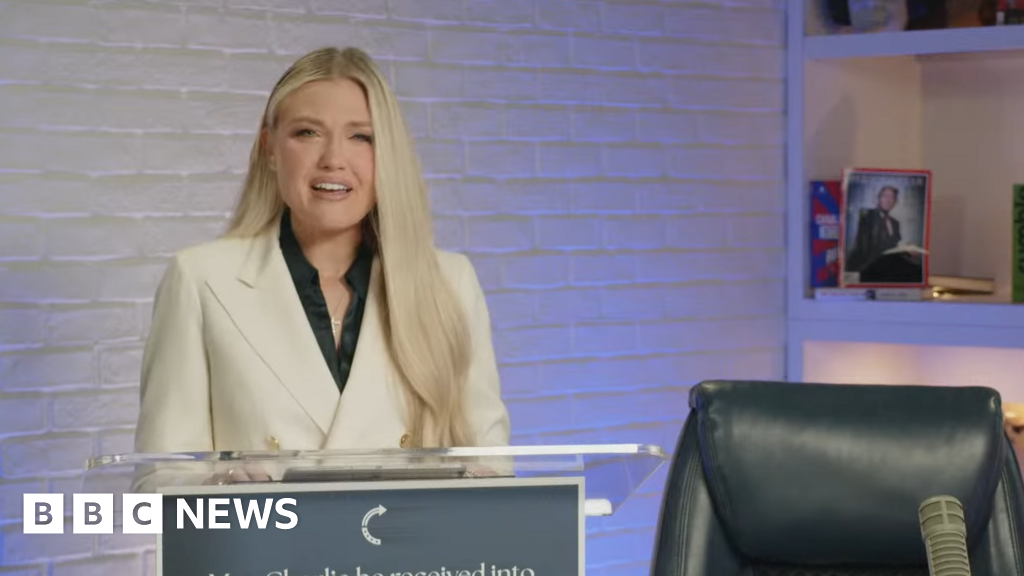 In a livestream, standing beside her husband’s empty chair that he used during podcast tapings, she quoted the Bible and spoke about his love for President Donald Trump, Vice-President JD Vance, the United States, and the couple’s two children.