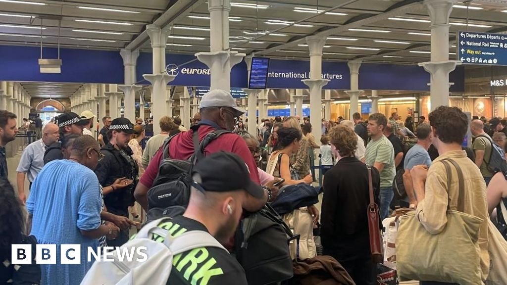 Hundreds of people are queuing at London’s St Pancras International railway station trying to access the service centre to rebook onto other trains.