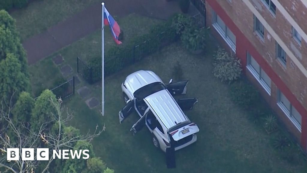 A man has been arrested after driving a car through the gates of the Russian consulate in Sydney.