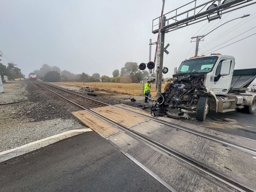 The two vehicles collided near Masten and Fitzgerald avenues, authorities said. Emergency personnel from the Santa Clara County Fire Department were dispatched to the site at 7:03 a.m. When authorities arrived, they found that the train had hit the front of the truck.