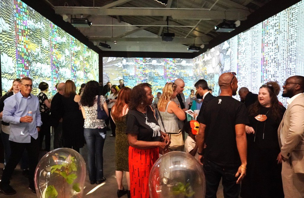 Artist Stephanie Dinkins speaks at the opening “Data Trust,” her immersive art installation, at the San Jose ICA on Friday, Sept. 19, 2025. (Photo by Keith McCullom)