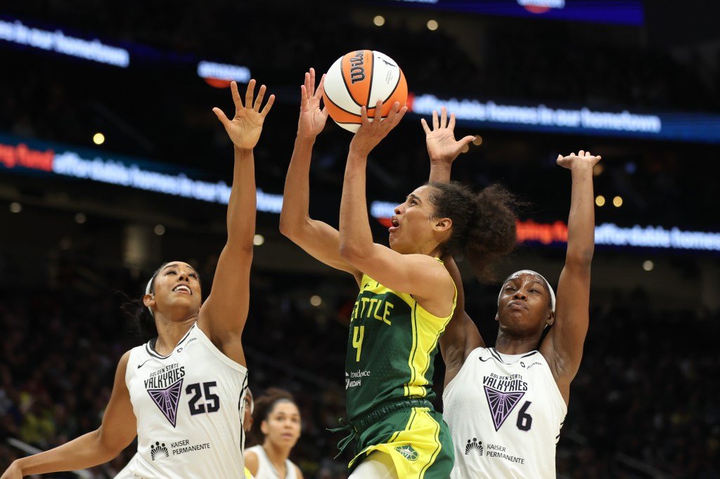 Golden State looked poised to break away in the third quarter, taking a seven-point lead to open the second half. Seattle responded with a 7-0 run of their own, but a barrage of 3-pointers rebuilt the Valkyries’ advantage and pushed the visiting team’s lead to eight entering the fourth quarter.